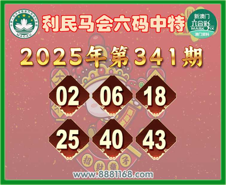 341期:〖利民马会〗 🎈六码中特🎈【02.06.18.25.40.43】开:06准上榜高手