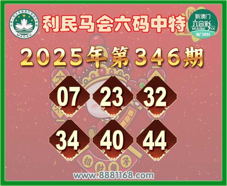 346期:〖利民马会〗 🎈六码中特🎈【07.23.32.34.40.44】开:03
